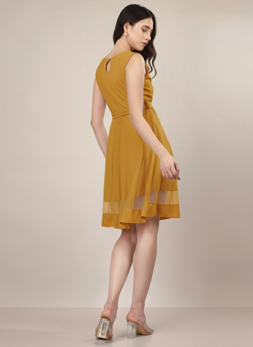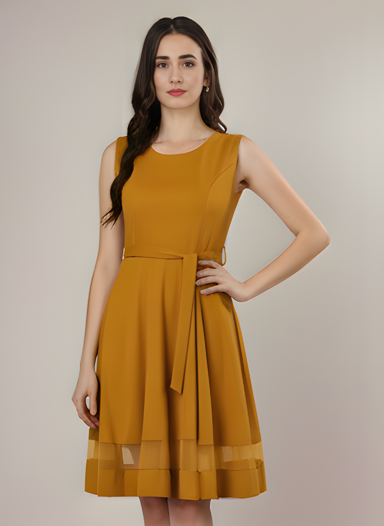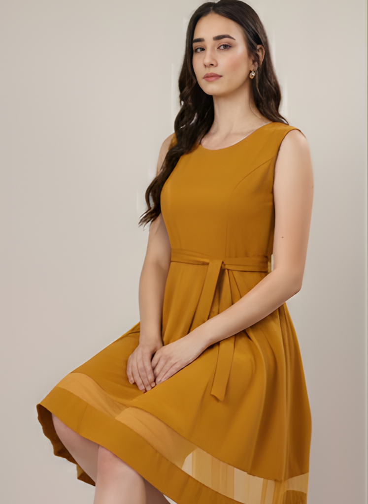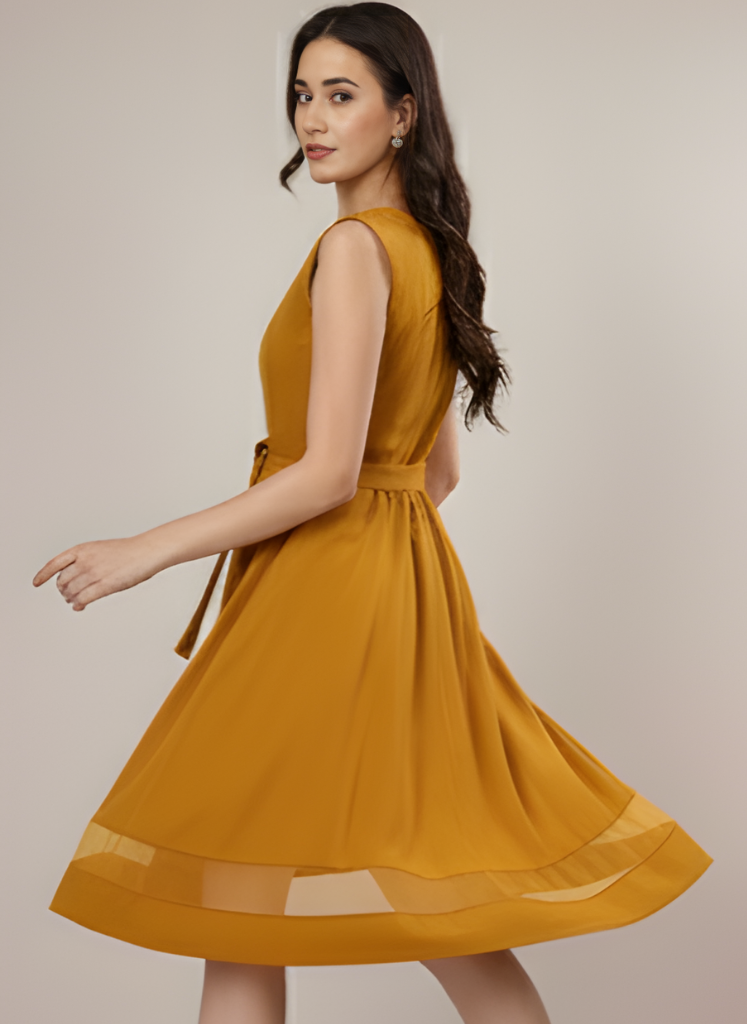 The Frosted Rose Mini Dress is the perfect blend of soft elegance and playful charm. Designed in delicate peach, mustard and black colour with a subtle frosted finish, this mini dress features a flattering silhouette that hugs in all the right places while allowing easy movement. The straight neckline and adjustable spaghetti straps create a feminine and effortless look, while the structured waist and gentle ruching along the bodice enhance its shape and detail. Crafted from lightweight, breathable fabric, it’s as comfortable as it is eye-catching.Smooth fit, and the slightly open back adds a hint of allure. Whether you’re heading to a garden party, a romantic dinner, or a night out with friends, the Frosted Rose Mini Dress brings the perfect mix of confidence and grace to any occasion.