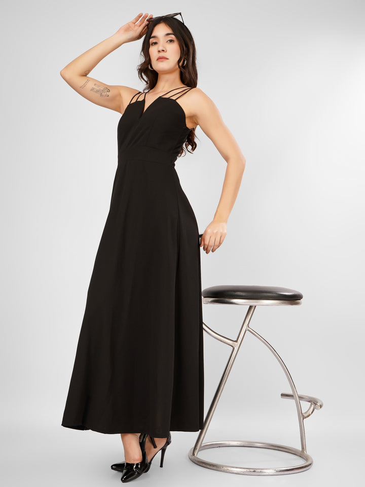 This TRIO SRAPPY FLARE MAXI DRESS is sure to make heads turn! With a V neck detailing, thin three straps and the perfect midi length, it is oh so trendy.The silhouette of the dress is very flattering. It is a basic dress which will become your wardrobe staple and can be worn from day to night. Made from super soft and stretchable fabric, making it travel friendly.